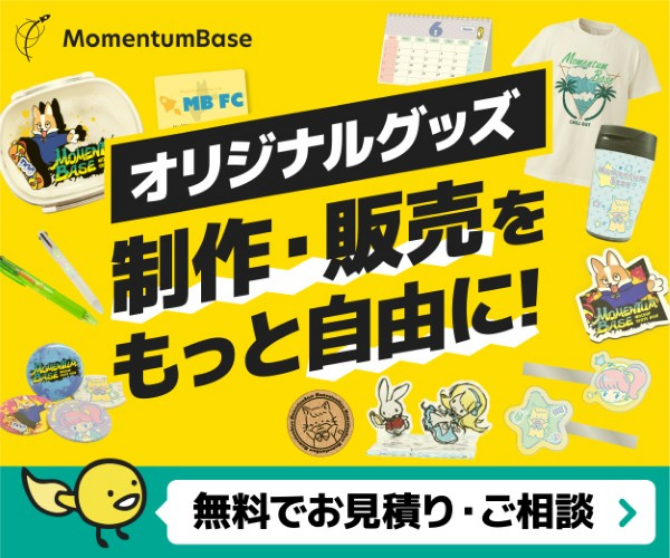 モメンタムベースは、企業や個人事業主向けに「オリジナルグッズ」や「ノベルティ」をOEM(受託生産)で制作する専門サービスです。